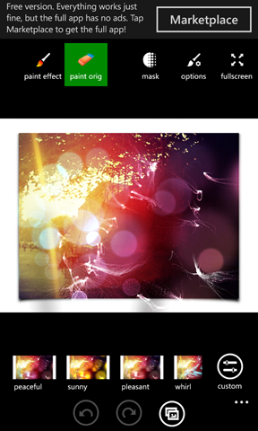 Fantasia Painter has a free and paid version. In free version you will get all the features but with Advertisements. Fantasia also provides a lot of features like what I get in Thumba. One of the great feature of Fantasia is it’s Brush. Using Brush functionality you can do Smudging, Lighten or Darken the photos by brushing on top of the image, Erasing the brush strokes and a lot. This painting feature is not available in Thumba editor.