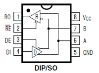 Max 485 is a 8 pin chip as shown below. It’s a DIP chip and SMD have different pin layout.